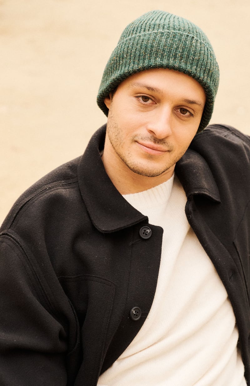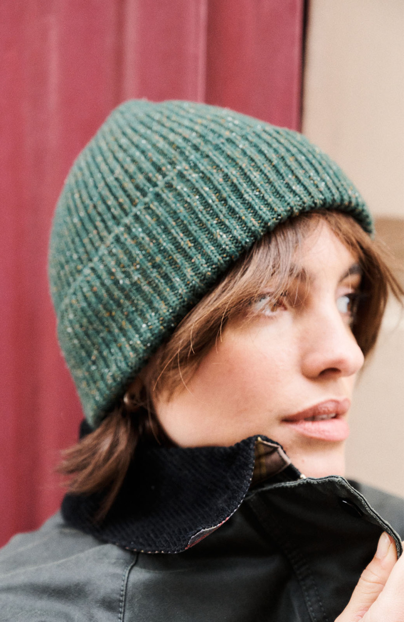 Voici de quoi éclabousser l’automne et l’hiver d’une touche de couleur. Un bonnet tout doux et bien chaud, grâce à un savant mélange, pour couvrir ses petites oreilles par tous les temps. Bonus ? Un style classique mais pas plan-plan, grâce à une laine chinée, mouchetée de petites tâches colorées. Et comme par magie, ça fait mouche.