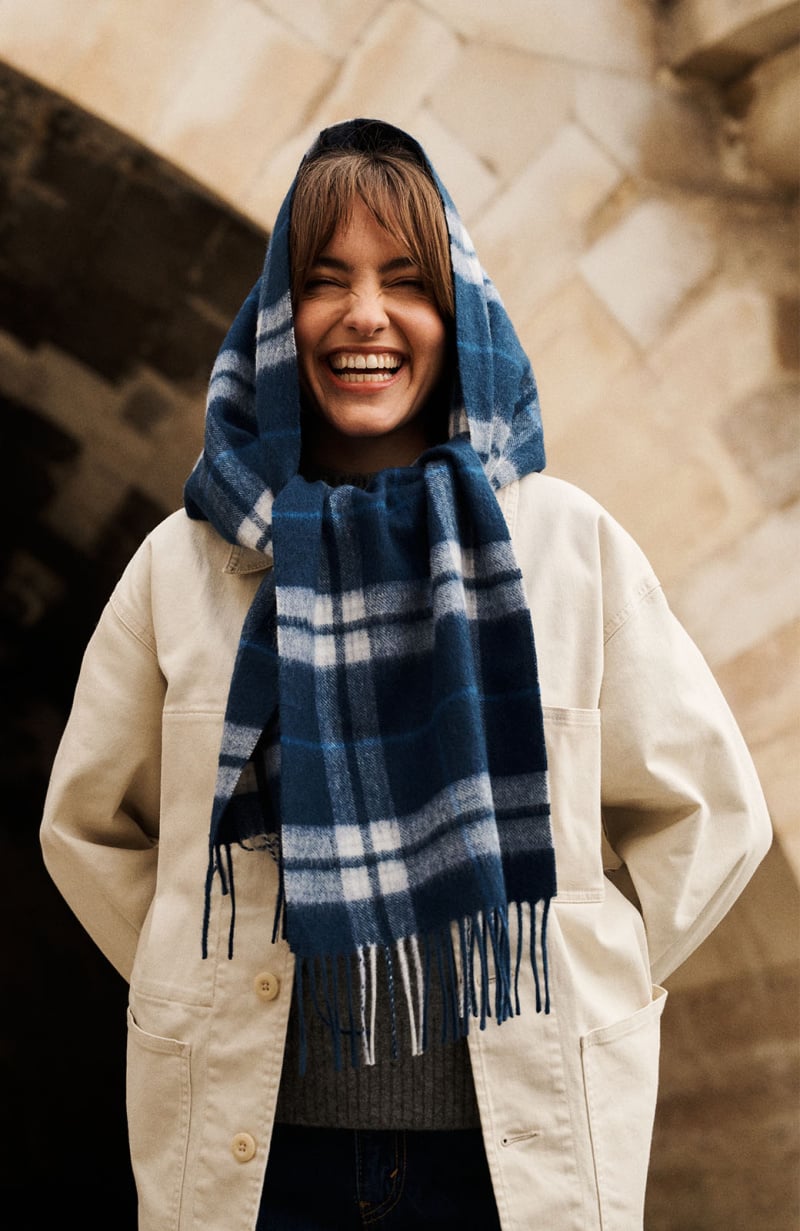 Voilà une écharpe à l’allure millimétrée qui donne envie de s’y lover le cou par tous les temps. Que ce soit par avis de tempête de neige ou de grand beau temps. De quoi piquer son style hivernal d’une touche de tartan résolument classique et élégante. À porter nouée, tombante ou sur les épaules. Chacun son style et sa couleur. Le tout en pure laine, évidemment. Chauds les carreaux, chauds.