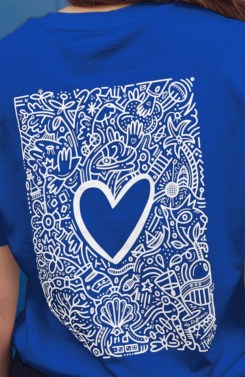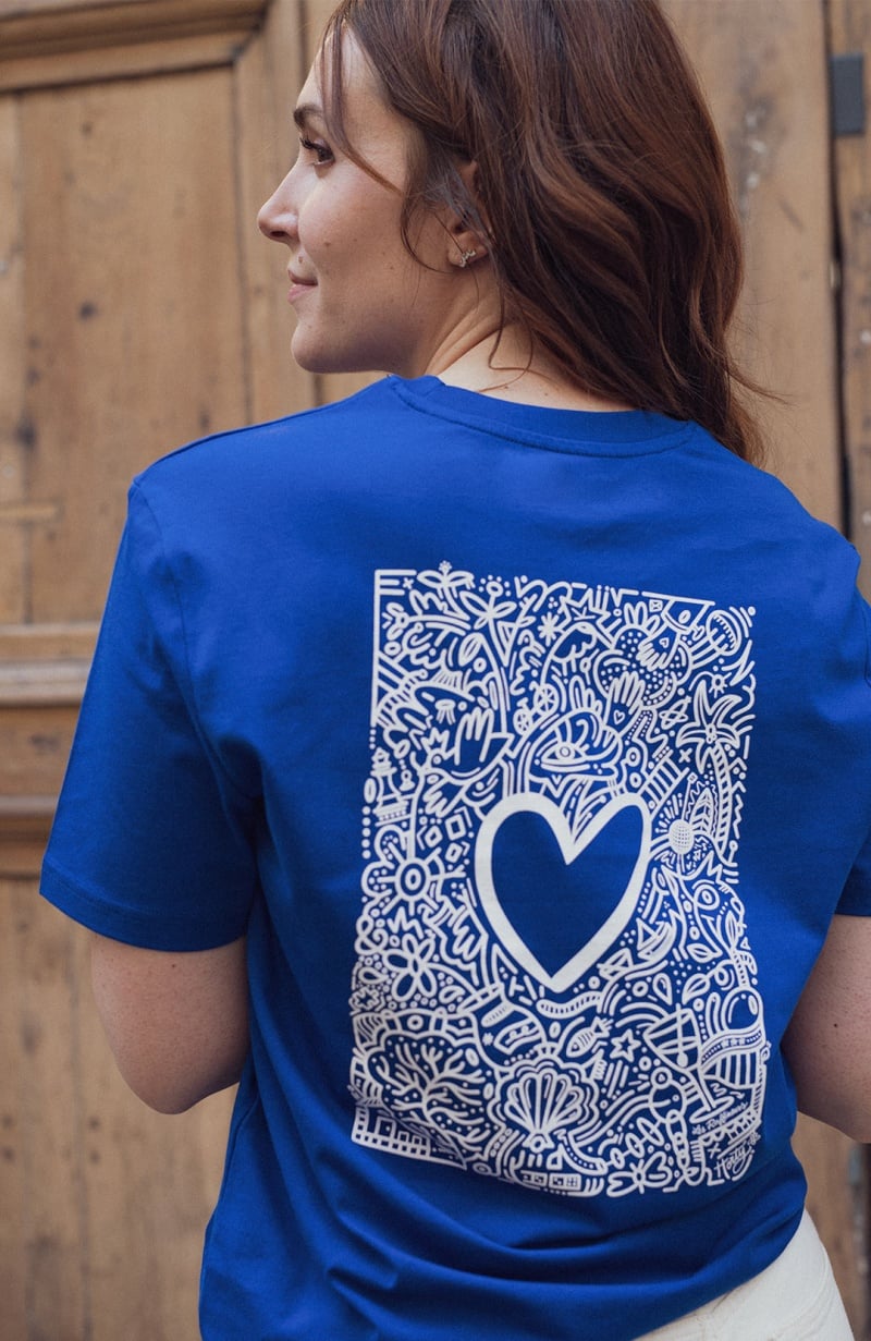 Un t-shirt bleu en coton bio bien coupé qui en dit long. Dans le dos, une illustration signée Horty Fleur, tout en finesse, en caractère et jolis clins d'œil. Une création foisonnante, poétique, un brin sauvage, comme un jardin secret qu’on aurait envie de porter. Sur le cœur, l’inscription “La madre”, à porter avec fière allure. Le genre de cadeau qui coche toutes les cases : stylé, personnalisé, arty et un brin nostalgique. Comme la madre, quoi.