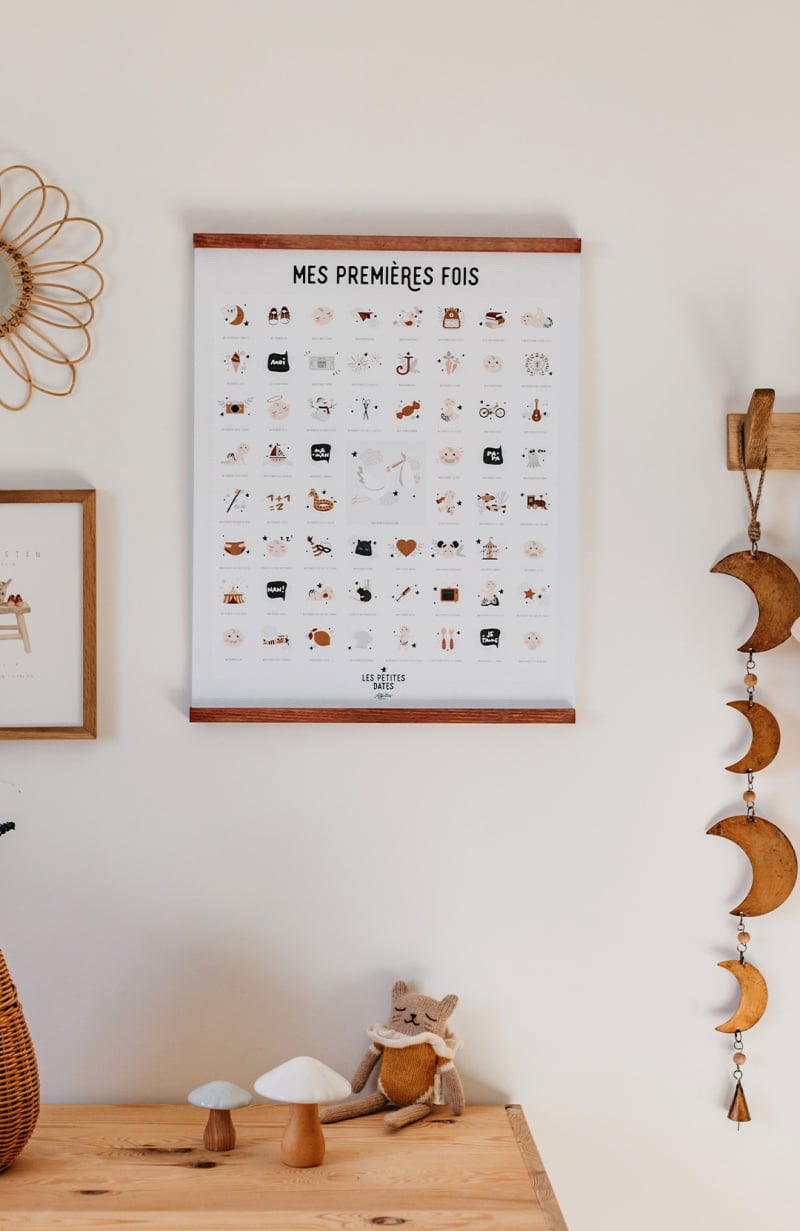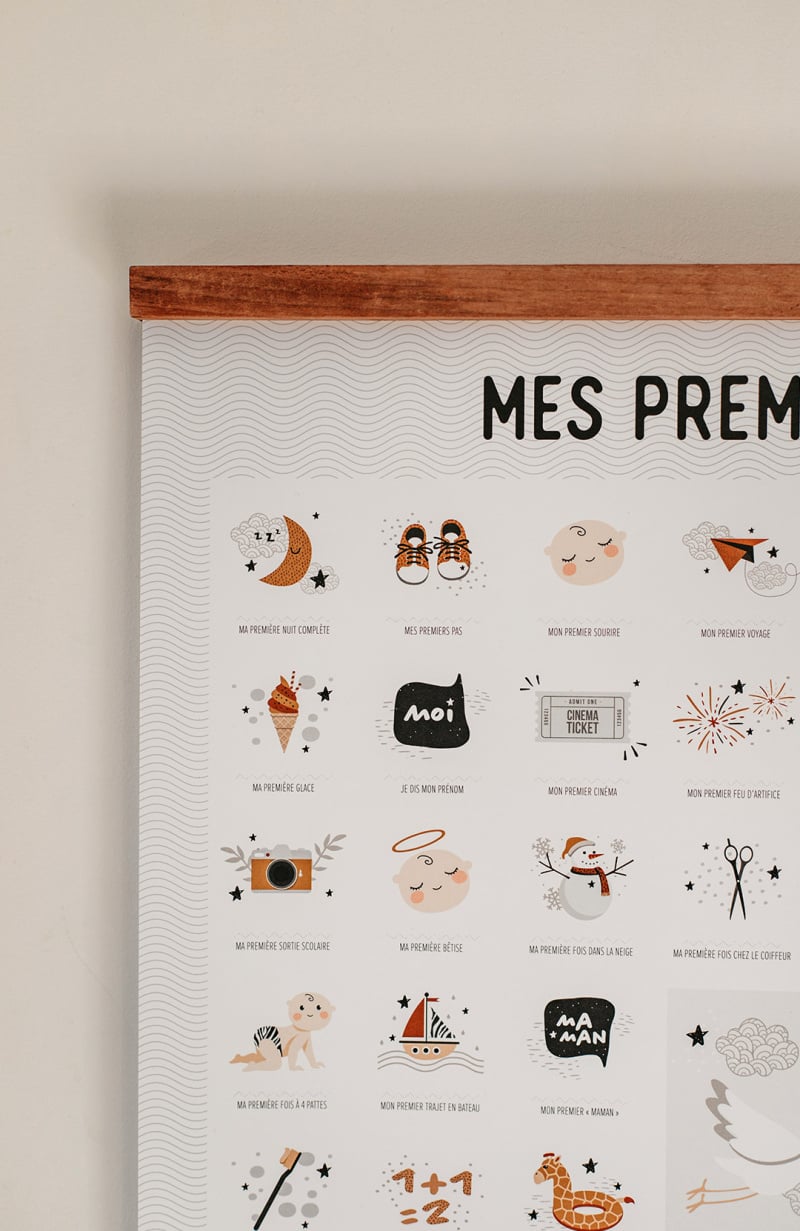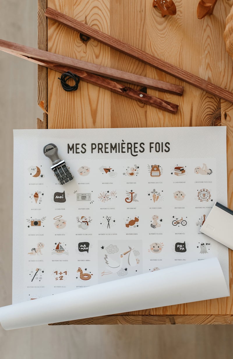 Une affiche fabriquée en France, sur du papier écoresponsable : de quoi lancer les bébés sur la bonne voie. Ajoutez un chouette design, une idée géniale et voilà l'affiche Mes Premières Fois. Un cadeau de naissance original à offrir ou une idée à ajouter sur sa liste de naissance, qui accompagne les petites canailles, fille ou garçon, du premier jour au premier spectacle en passant par le premier mot. Un cadeau qui dure, quoi.