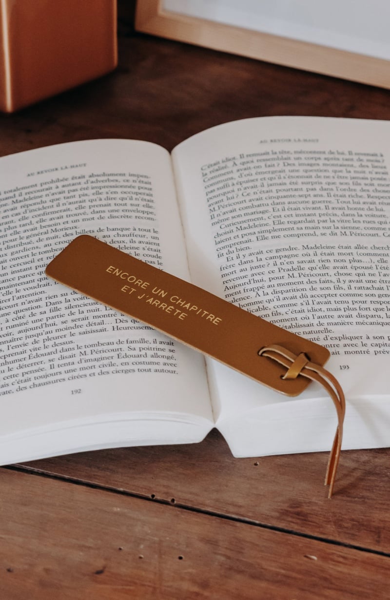 Avis aux lecteurs chevronnés ou à ceux qui essayent encore de finir le Stendhal commencé au lycée : avec un marque-page stylé, ça marche tout seul. Un bel objet, en cuir, qui nous donne envie de tourner les pages encore et encore (c'est que le début d'accord, d'accord). Fabriqué en France, c'est un petit objet qui sublime le quotidien, au sens propre. Sans jamais perdre le fil de l'histoire.