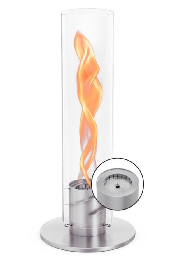 Pour se créer une bulle cocooning en hiver ou une ambiance feu de camp en été, on mise sur cette cheminée au bioéthanol. À l’intérieur du cylindre de verre, un magnifique tourbillon de flammes, hypnotisant et reposant. En terrasse pour profiter des belles soirées ou dans le salon devant un film : c'est combo gagnant. En bonus ? Une légère chaleur en émane.