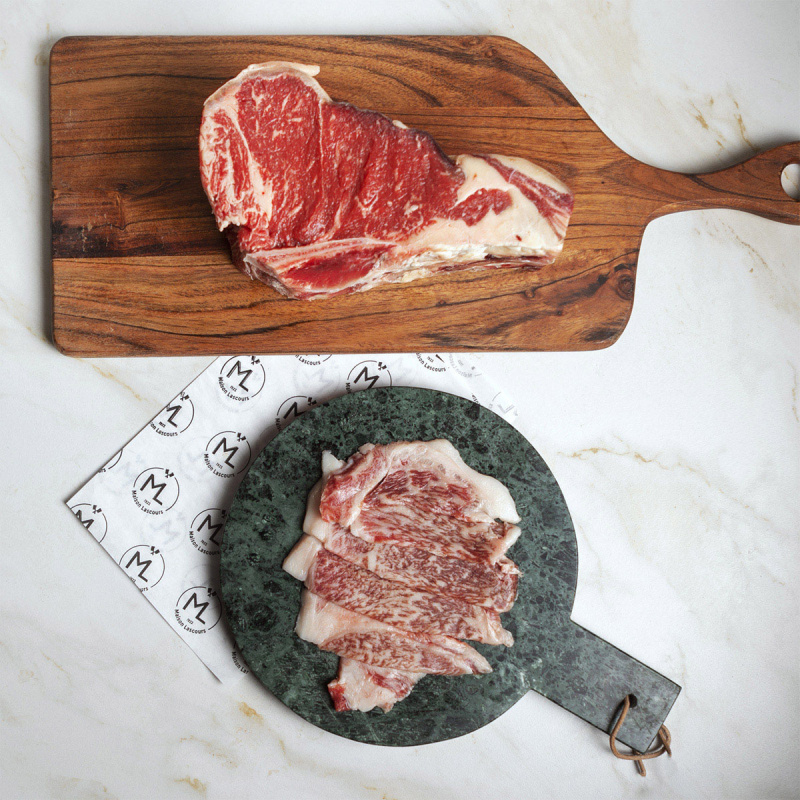 Coffret 2 : Bœuf de Kobe en découpe japonaise (100g) et côte de bœuf normande (1.4kg) morceaux découpés la veille de la livraison.