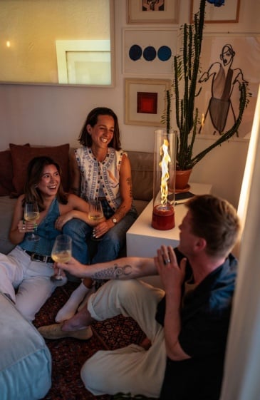 Que ce soit sur le balcon pour prolonger les soirées d’été ou dans le salon pour réchauffer l’ambiance... Avec SPIN air, la magie du feu s'invite partout où vous en avez envie. Cette cheminée de table transforme chaque recoin en un véritable coin à vivre. Son design léger, élégant et coloré sublime la flamme comme une sculpture vivante, hypnotique et pleine de caractère. SPIN air, c’est ce supplément d’âme qui donne du relief à votre déco : audacieux, raffiné, et prêt à faire vibrer vos soirées sans jamais perdre la flamme.