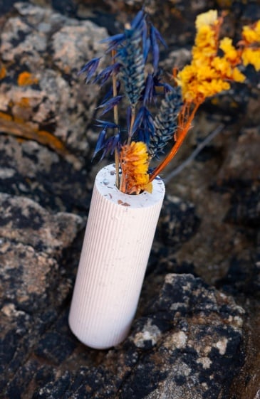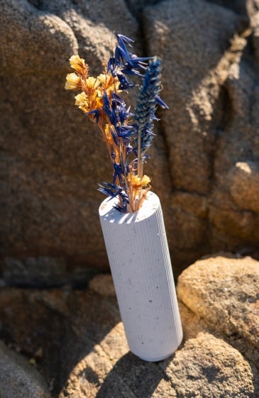 Pour les amoureux des petits bouquets improvisés. Voici un soliflore façonné à la main à Nantes à partir de coquillages recyclés. Oui, de vrais coquillages : huîtres, moules et Saint-Jacques revalorisés pour donner naissance à une matière minérale étonnante. Sa silhouette élancée accueille un bouquet de fleurs séchées ou de jeunes pousses cueillies au détour d’une balade. Posé sur une table, une étagère ou un rebord de fenêtre, il apporte une touche naturelle et lumineuse à la casa fissa-fissa. Entre design contemporain, artisanat français et poésie marine, ce soliflore prouve qu'un détail peut faire toute la différence. Fleur bleue assumée.