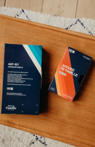 Un packaging en forme de cassette VHS qui nous replonge tout droit dans les 80’s. La cassette, c’est un peu l’objet par excellence pour célébrer la famille : on y enregistre baptêmes, mariages, fêtes de famille, anniversaires et petits moments de vie. Alors voilà une façon de continuer à lui rendre hommage. En prime ? Tout en carton, on peut même écrire un petit mot ou le surnom malicieux du destinataire sur la tranche de la cassette.
