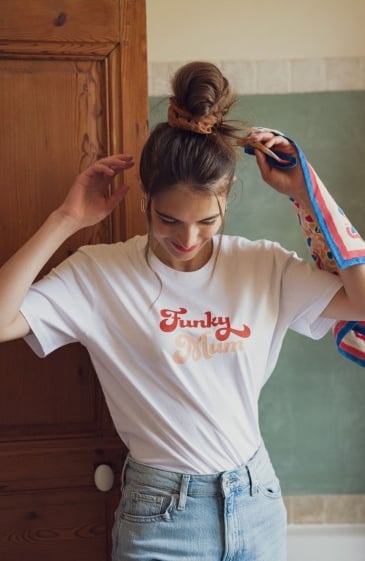 Funky Mum, celle qui met d’la joie, des rires, des sourires complices. La madre fun, pleine de vie, solaire et pétillante. Celle qu’on entend rire dans tout le quartier, celle qui a toujours le don de nous faire sourire même quand on boude, celle qui chante à tue tête et n’a honte de rien. Toujours là pour sortir la petite coupe de champ’, chaque occasion est bonne pour partager et célébrer. Funky life, funky vibes, c’est la Funky Mum.