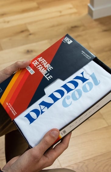 Un packaging en forme de cassette VHS qui nous replonge tout droit dans les 80’s. La cassette, c’est un peu l’objet par excellence pour célébrer la famille : on y enregistre baptêmes, mariages, fêtes de famille, anniversaires et petits moments de vie. Alors voilà une façon de continuer à lui rendre hommage. En prime ? Tout en carton, on peut même écrire un petit mot ou le surnom malicieux du destinataire sur la tranche de la cassette.