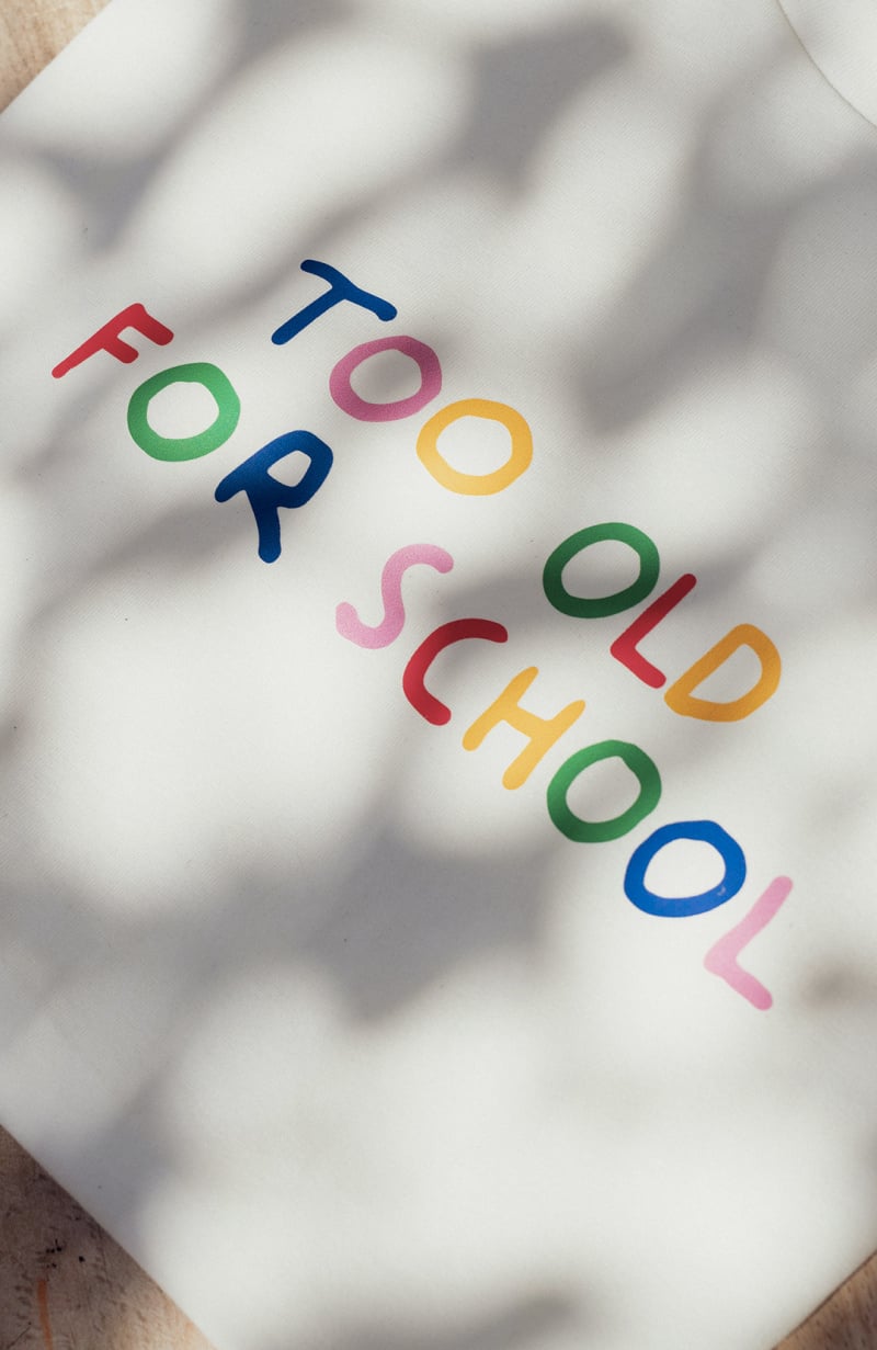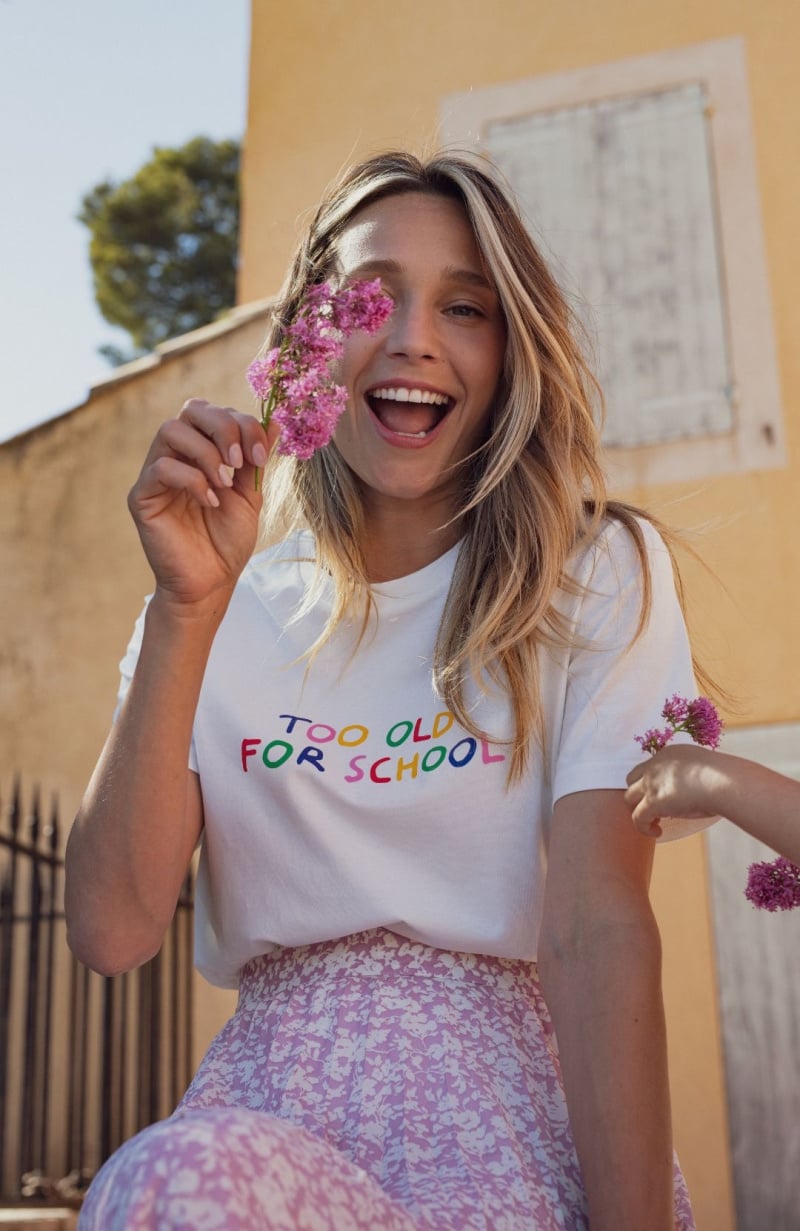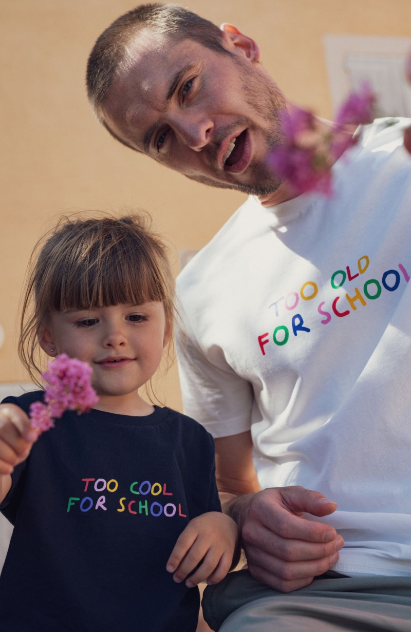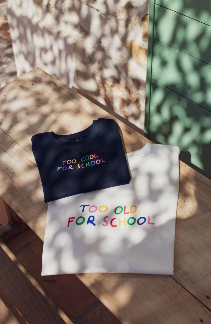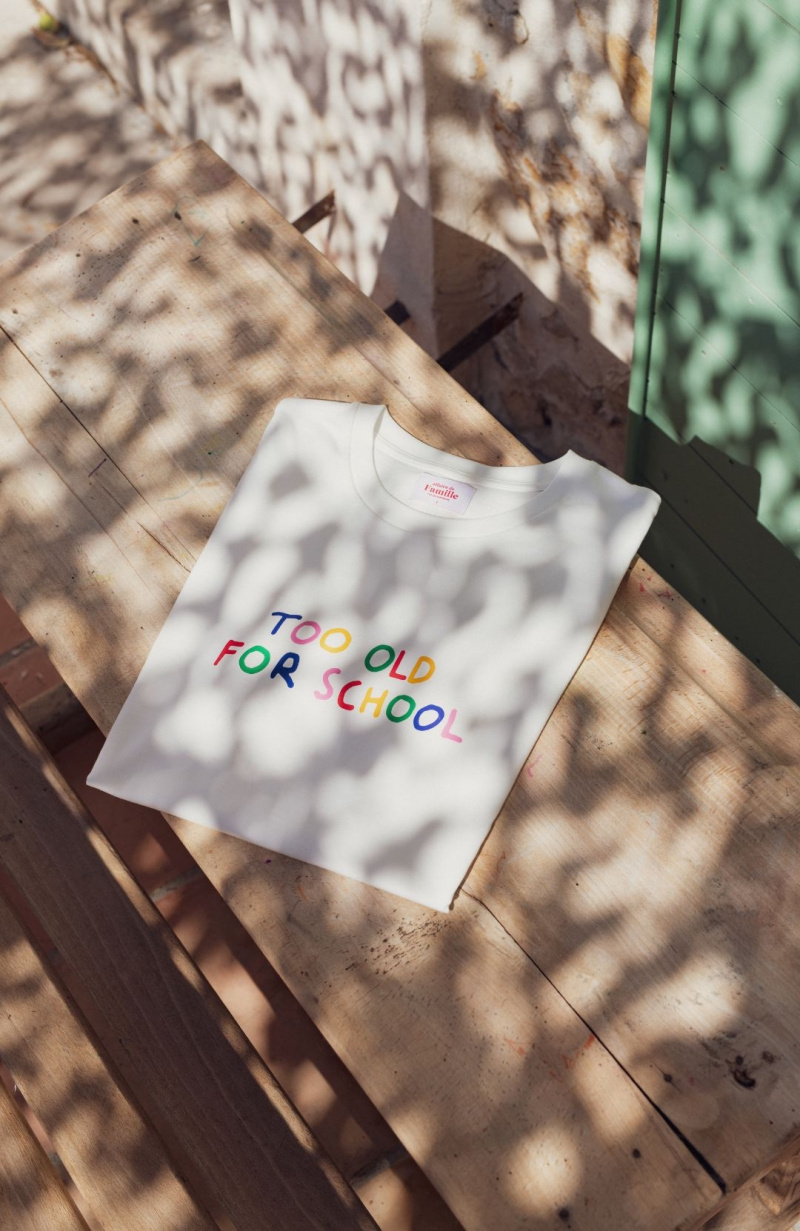 Voici un t-shirt inspiré pour parent assumé. Au programme, un toucher tout doux en coton bio et un message fun et décalé. Too old for school, certes mais toujours aussi cool. D’ailleurs, pour compléter ce look, le mieux est encore de l’assortir à celui de mini, qui arbore fièrement un “too cool for school”. Ça cool de source.