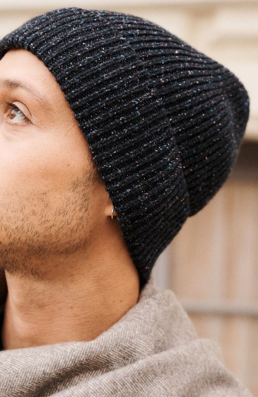 Voici de quoi éclabousser l’automne et l’hiver d’une touche de couleur. Un bonnet tout doux et bien chaud, grâce à un savant mélange, pour couvrir ses petites oreilles par tous les temps. Bonus ? Un style classique mais pas plan-plan, grâce à une laine chinée, mouchetée de petites tâches colorées. Et comme par magie, ça fait mouche.