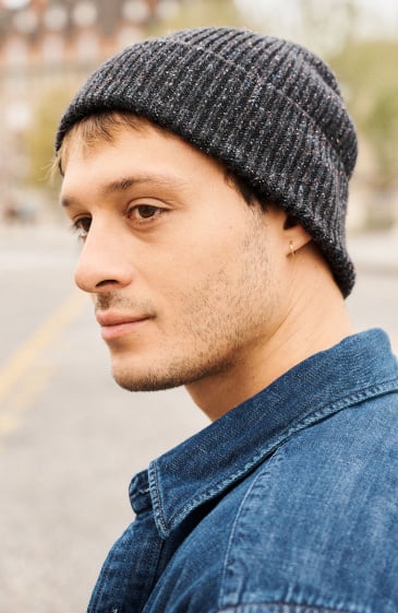 Voici de quoi éclabousser l’automne et l’hiver d’une touche de couleur. Un bonnet tout doux et bien chaud, grâce à un savant mélange, pour couvrir ses petites oreilles par tous les temps. Bonus ? Un style classique mais pas plan-plan, grâce à une laine chinée, mouchetée de petites tâches colorées. Et comme par magie, ça fait mouche.
