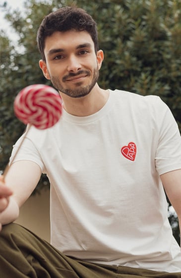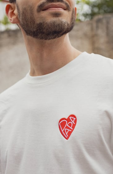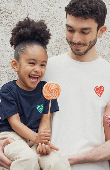Là, tout près du cœur, est venu se déposer ce petit cœur rouge inscrit du plus joli petit nom de la vie d’un papounet : PAPA. 4 lettres qui résument le rôle d’une vie à porter fièrement mais discrètement. Un cadeau indémodable, en somme, à (s’)offrir à la fête des pères comme une déclaration d’amour au monde. À porter aussi en gang avec maman et mini.