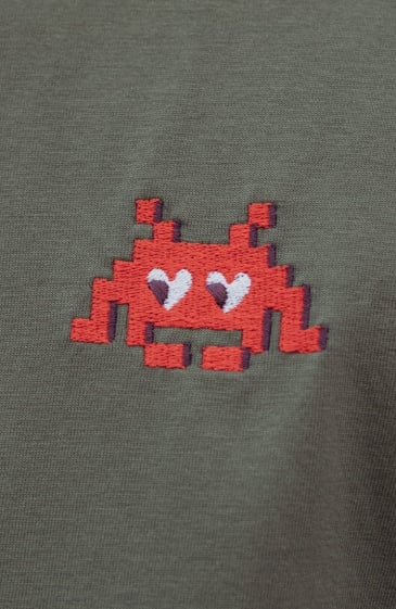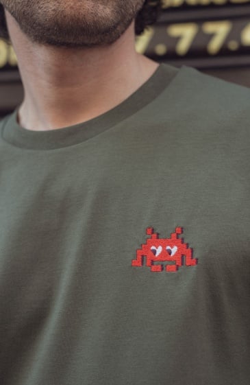 Il débarque tout droit des années 80, mais avec des cœurs dans les yeux. Ce petit alien brodé sur la poitrine donne un sérieux coup de love à l’iconique pixel. Un twist stylé, pile dans l’air du temps, à offrir aussi bien à son padre geek qu’à son pote resté bloqué au niveau 1 ou a son frangin fada des mosaïques arty. Côté qualité, on ne plaisante pas : coton bio, broderie made in France, coupe impeccable et coloris au choix. Résultat ? Un t-shirt qui coche toutes les cases. Level up.