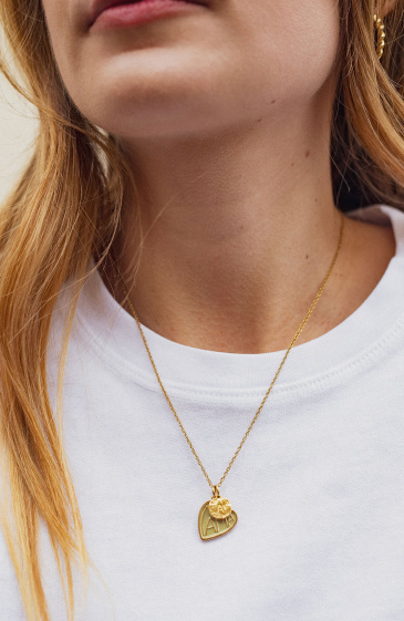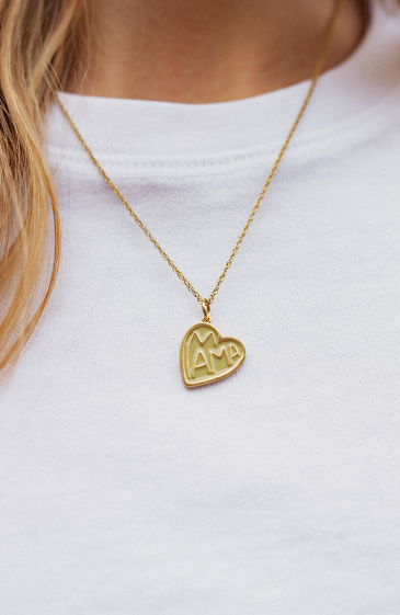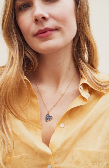 Un médaillon à offrir ou à porter comme un talisman. Comme un rappel, tout près de la gorge, siège de nos émotions, de ce rôle unique et essentiel : celui de la Mama. Celle qui prend soin des autres, qui inspire des générations de copines, qui console et qui fait rire la galerie. Bref, un petit porte-bonheur coloré qui ne vieillit pas grâce à sa composition robuste et délicate. Comme celle qui le portera, quoi.