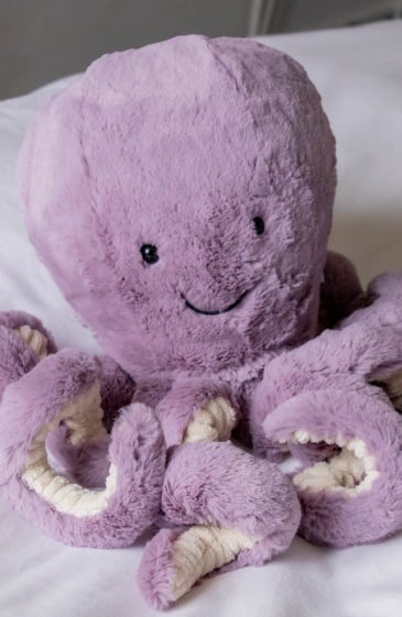 Injustement taxés de mollesse, on parlerait plutôt de nonchalance assumée pour ces céphalopodes aux bras accueillants. On aime l’idée de se nicher entre leurs tentacules duveteuses, ou la tête contre leur douce fourrure. Une présence massivement réconfortante.