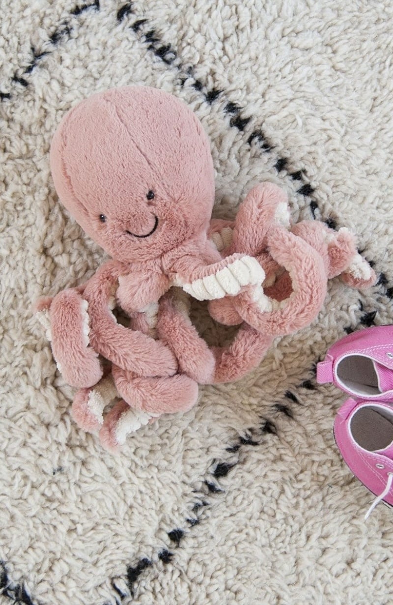 Petite, Odell suit les aventures des petite canailles où qu'elles aillent. C'est la taille nickel pour un doudou de tous les jours. Moyenne, la pieuvre souriante est une présence réconfortante dans la chambre des kids. Géante, c'est le copain rigolo qui fait aussi office de chouette déco qui change. Tout dépend donc de ce que l'on veut en faire.