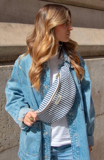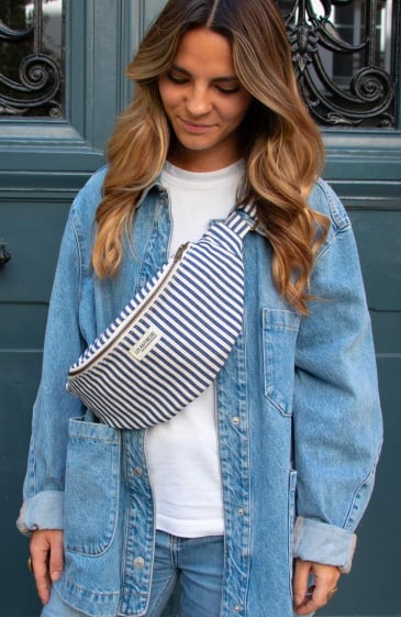 Cette version en coton pourrait bien devenir leur nouvelle favorite. Pourquoi ? Parce qu’elle coche toutes les cases. Un style marinière qui sent bon le soleil, un format compact et ultra pratique, et surtout une organisation sans faille. Trois poches (oui, trois) pour tout garder à portée de main, sans fouiller trois heures.