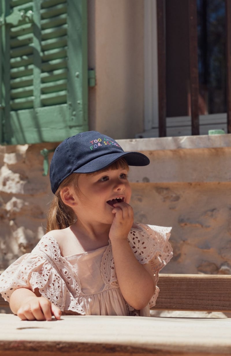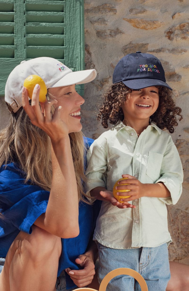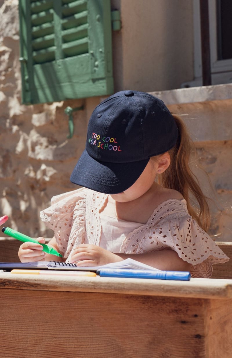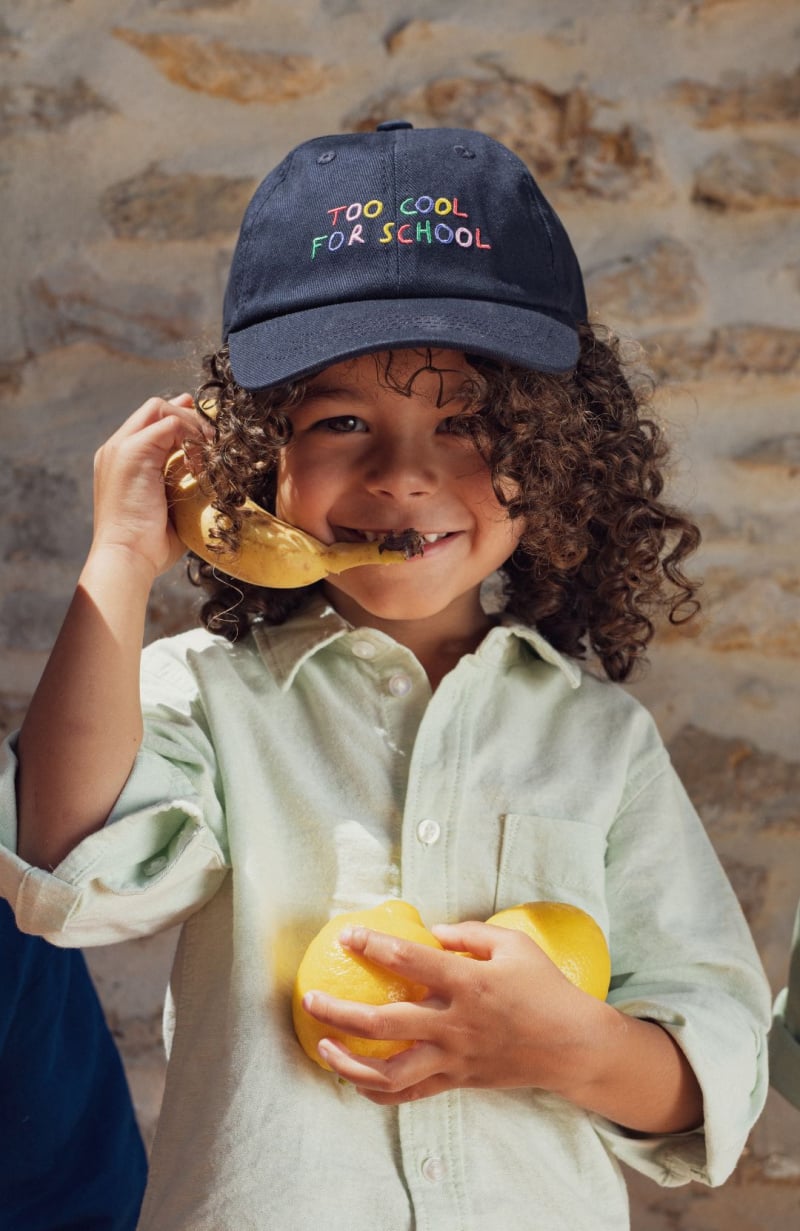 Ni une ni deux, on leur enfile cette casquette colorée avec un style rétro pour les voir gambader dans la cour de l’école, façon pied de nez à la maîtresse ou sur la plage façon “je profite des vacances”. Un couvre-chef qui protège du sunshine tout en leur donnant un petit look qui claque, que demande le peuple ? En bonus, on assortit cette casquette à la sienne, version adulte : “too old for school”. Un peu d’humour, ça ne fait pas de mal.