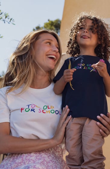Les petites canailles au look espiègle arborent fièrement ce t-shirt à message, tout au long de l’année. Un coton tout doux, un message qui dit tout : que demande le peuple ? Probablement un t-shirt matching pour les parents, “Too Old For School”, histoire de faire marrer les grands et les petits. Easy.